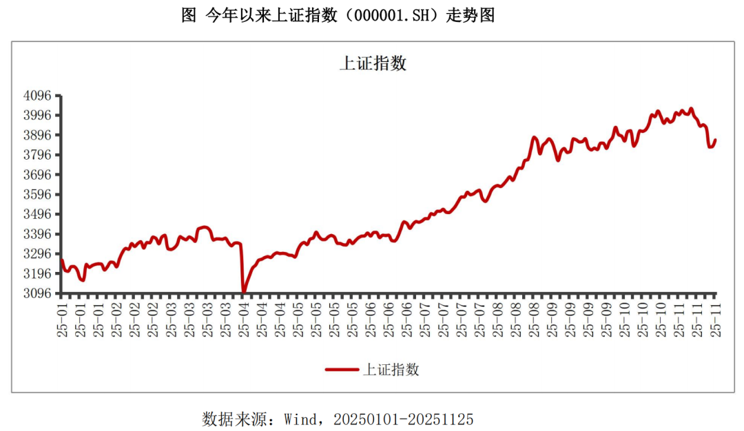 今年7月以来,上证指数自3500点附近企稳上行,至8月末已上行至3800点。进入9月,指数进一步上探至3900点附近并转入震荡调整;直至10月末,指数短暂突破4000点整数关口,但未能有效站稳,随后承压回落,转入宽幅震荡。